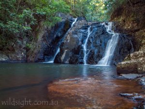 There is space for a couple of cars on the left just before the creek (if this is taken there is a another pull-over area about 50m back up the road). There are two tracks leading from this point – take the one that leaves the road about 10 metres from the creek, which winds its way through the forest before returning to the creek where it splits in two, each of which leads to a waterhole.