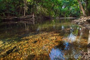 Take care if you decide to go swimming in these, as there are hidden rocks close to the surface and there’s no barrier to crocodiles who decide to venture up the creek from the sea. Head back the way you came, and when you get back to the road don’t forget to take the other track, which leads for about 20 metres along the shore of another pretty waterhole.
